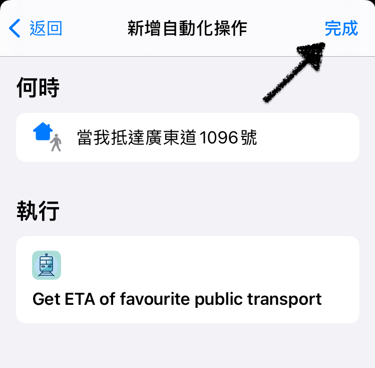 受限於Apple系統,每次到達時會彈出下面通知,須按下「執行」方會彈出到站資訊